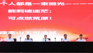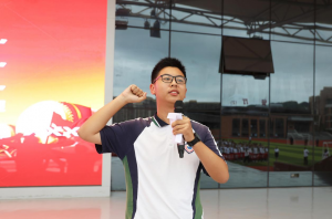 学生代表崔明阳在发言中坦露他也会“因解不开数学题焦头烂额,在清晨闹钟响起时挣扎起床,也曾拿着不尽人意的试卷在走廊尽头偷偷抹泪……”,但他却能在受挫时及时调整心态,制定详细学习计划,将大目标拆解成一个个小目标,最终成绩得到稳步提升,最后他呼吁全体同学“没有一座高山不可逾越,没有一片题海不能征服!今天的泪与汗,都会化作答卷上的星辰大海! ”