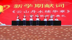 高二年级6名学生代表深情献词。他们饱含激情、信念坚定,用铿锵有力的话语表达了全体同学对新学年勇敢追梦、砥砺前行的信心与期待。