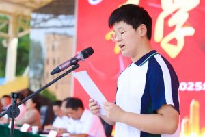 高三年级徐金锐同学代表全体学生发言,用真诚的语言和坚定的决心,表达全体同学在新学年将不负韶华、勇敢追梦的信念,书写携手并肩,以实际行动创造属于自己的精彩篇章。