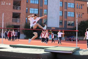 铅球运动员扎稳马步、全力掷出,铅球落地的沉响,是“更强”的宣言;跳高横杆一次次升高,选手助跑、起跳、过杆,腾空时的舒展姿态,像要摘走秋日的流云;跳远沙坑前,助跑、踏板、腾空、落地,沙粒飞溅的痕迹,激扬着少年们“更远”的梦想。每一个项目里,都藏着商中学子对突破自我的执着。