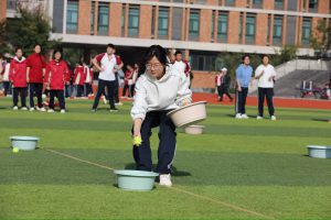趣味项目充满欢声笑语。集体跳绳时,队员们默契配合、脚步一致;沙包掷准,选手们屏气凝神、瞄准投掷;“抢收抢种”队员们协作穿梭,“骑毛毛虫”比赛中口号喧天、同步发力。欢声笑语间,班级凝聚力悄然升华。